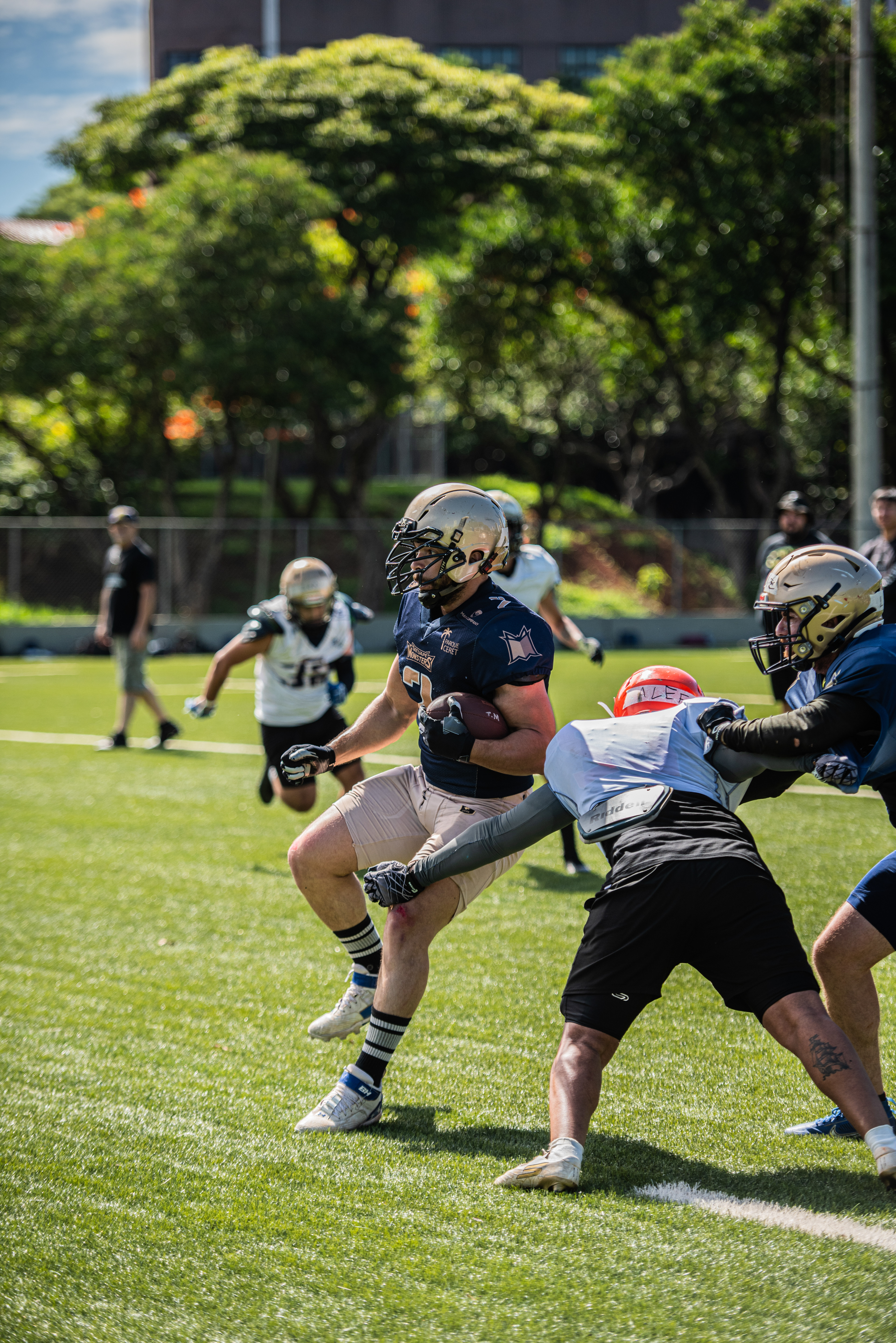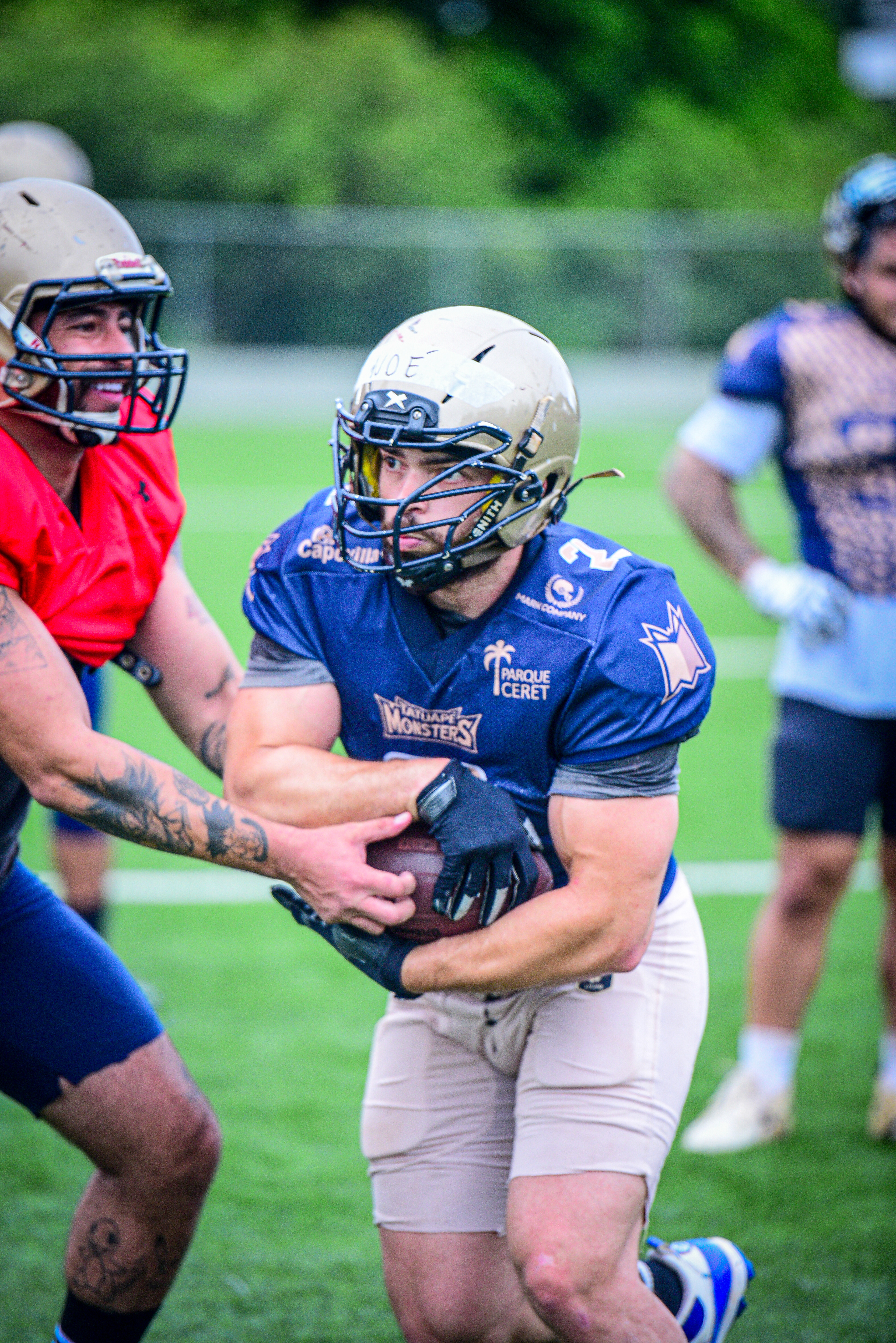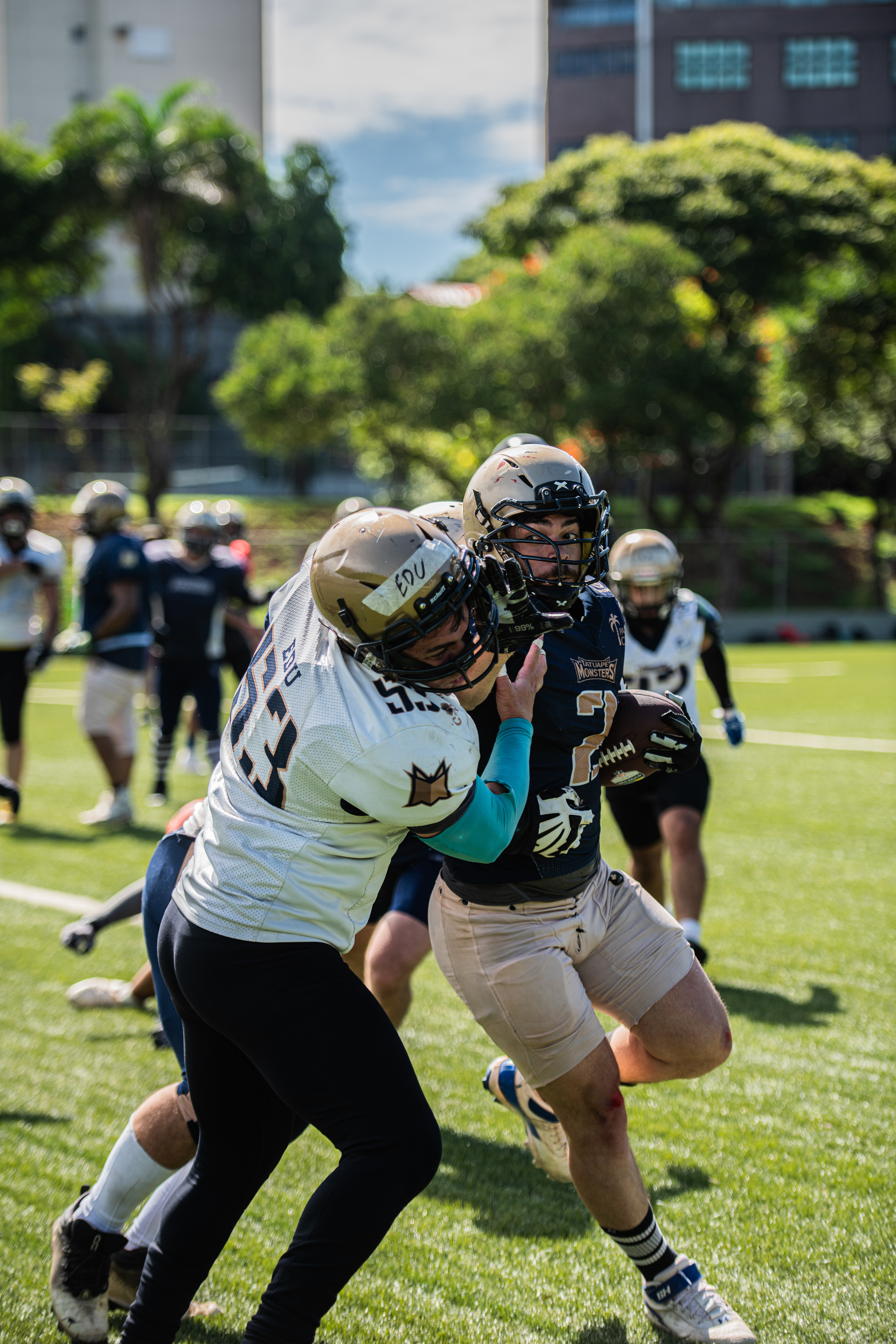 Registro fotográfico do Tatuapé Monsters (futebol americano) em São Paulo, durante treinos e jogos. Foco em ação, emoção e identidade da equipe — imagens para atletas, redes sociais e divulgação do time.